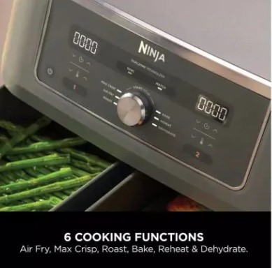 - 6 functions: air fry. bake, crisp, reheat, dehydrate, max crisp