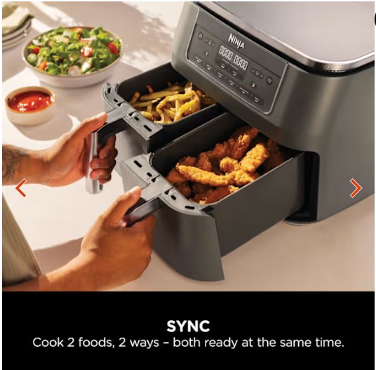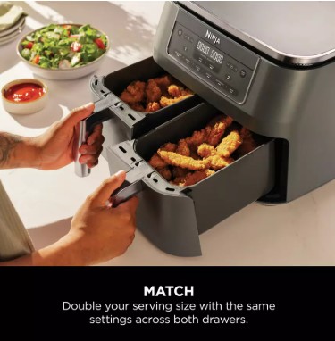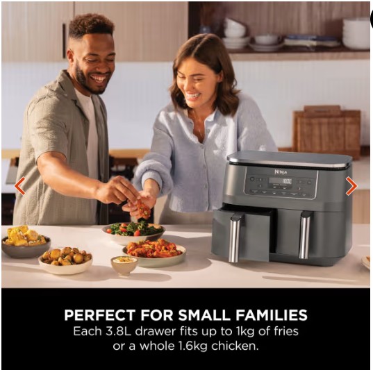 - 7.6 litre capacity twin drawer- cook 2 foods two ways