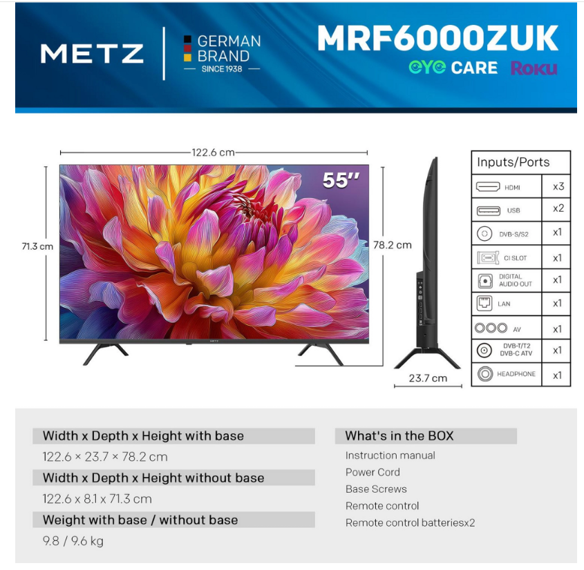 - Order number: METZ-55MRF6000ZUK